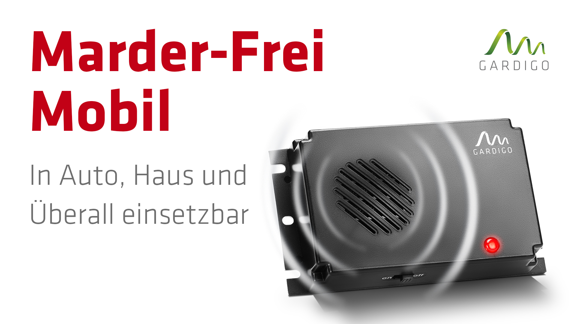 The battery-powered marten Repellent by GARDIGO – No connection to the car battery required! Suitable for the engine compartment in cars, garages, houses, attics, barns, or garden sheds. The electronic marten repeller emits high-frequency tones and is used wherever biting martens are causing trouble.