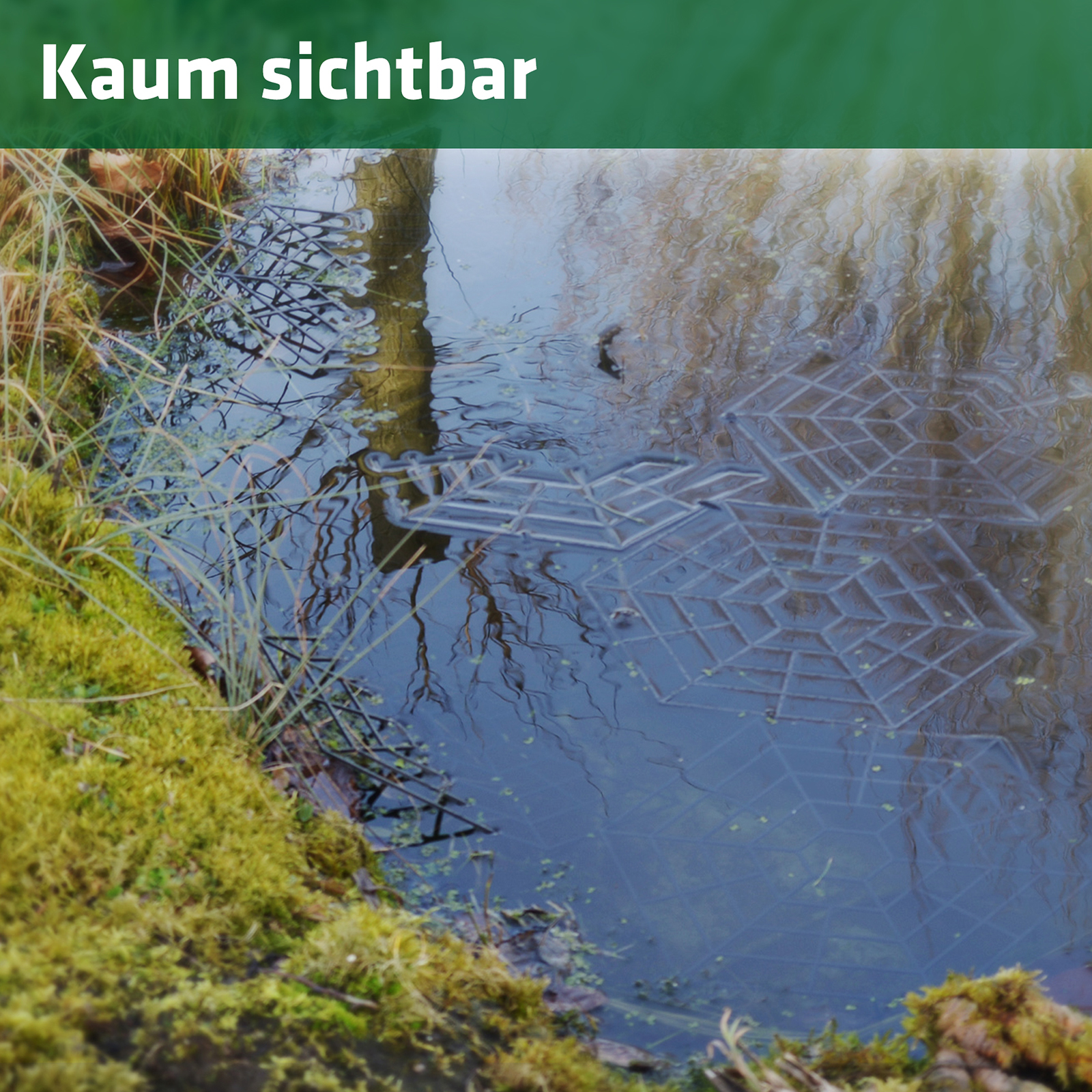 Depending on which predators you need to protect your pond from, you may cover the complete surface or just the edges. The grids float just below the surface and are invisible from the outside.