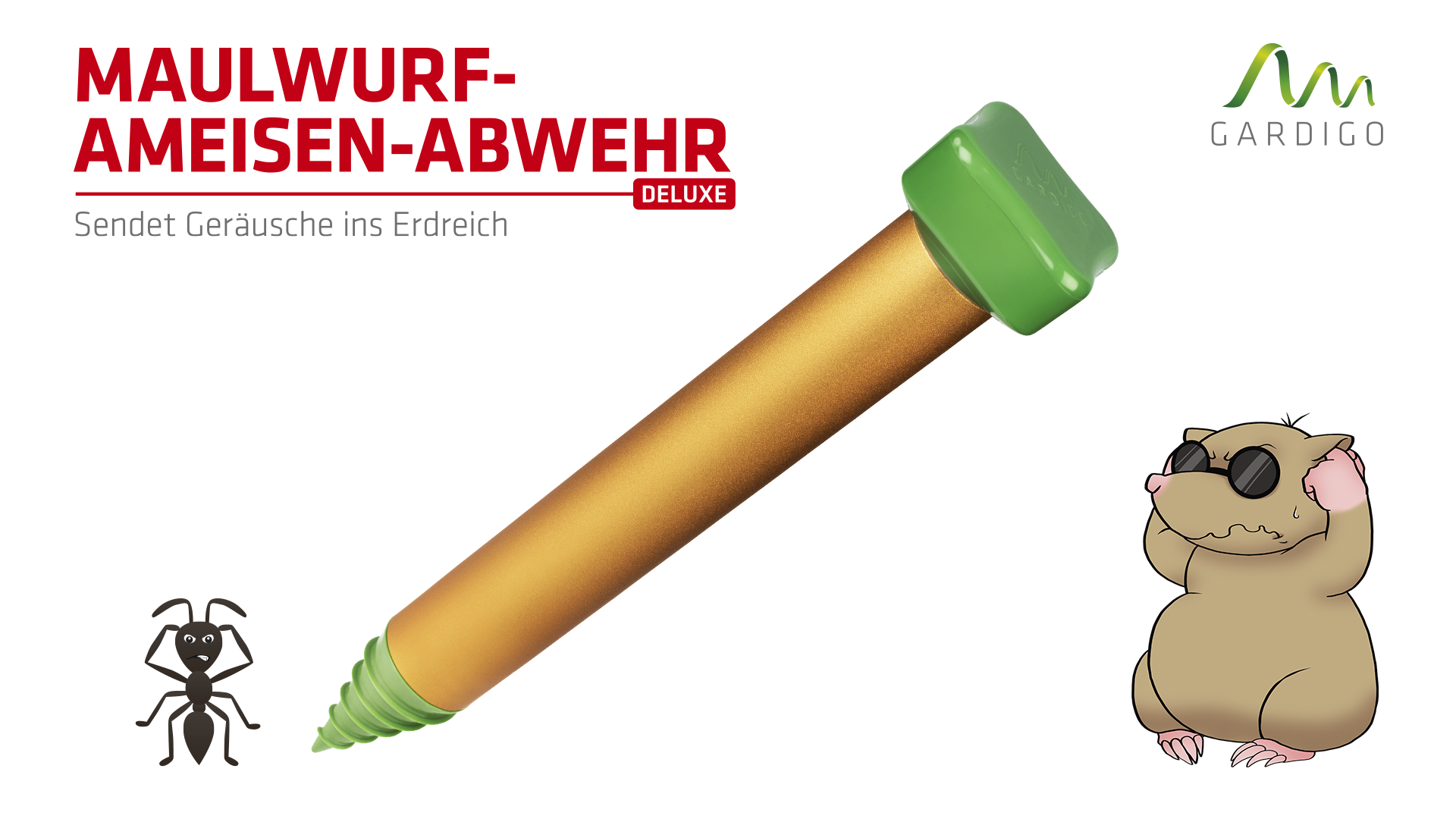 Mole-Ant Defense Deluxe | sonic deterrent | mole repeller with vibration & drilling aid