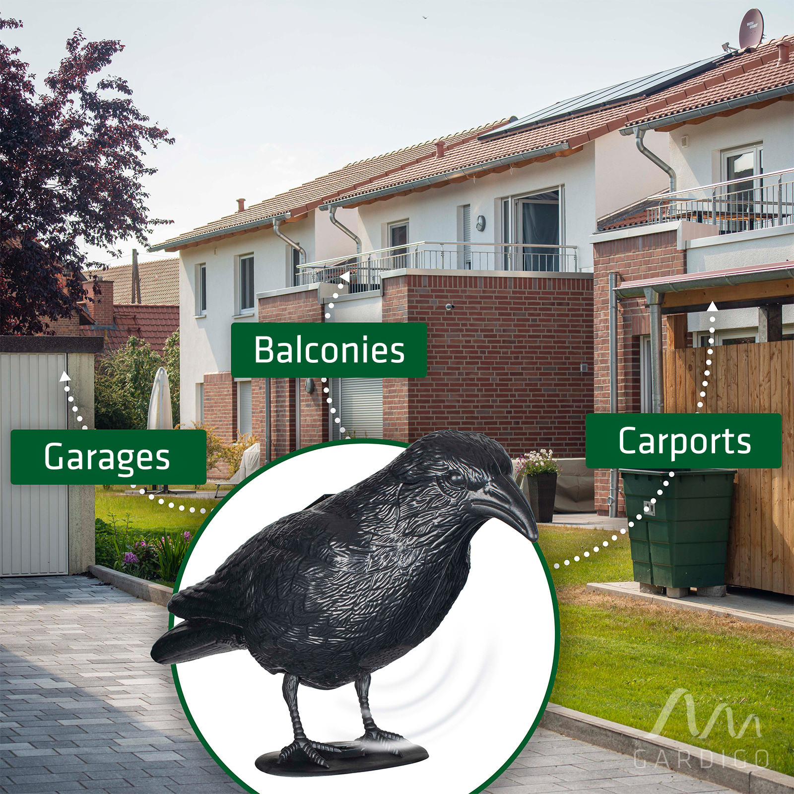 When dealing with pigeons and other small birds, their instincts can be used to your advantage. They tend to stay away from crows and other corvids, as they prefer not to confront these natural enemies. The GARDIGO Solar Pigeon Deterrent is a particularly realistic crow decoy that emits sounds whenever a bird approaches.