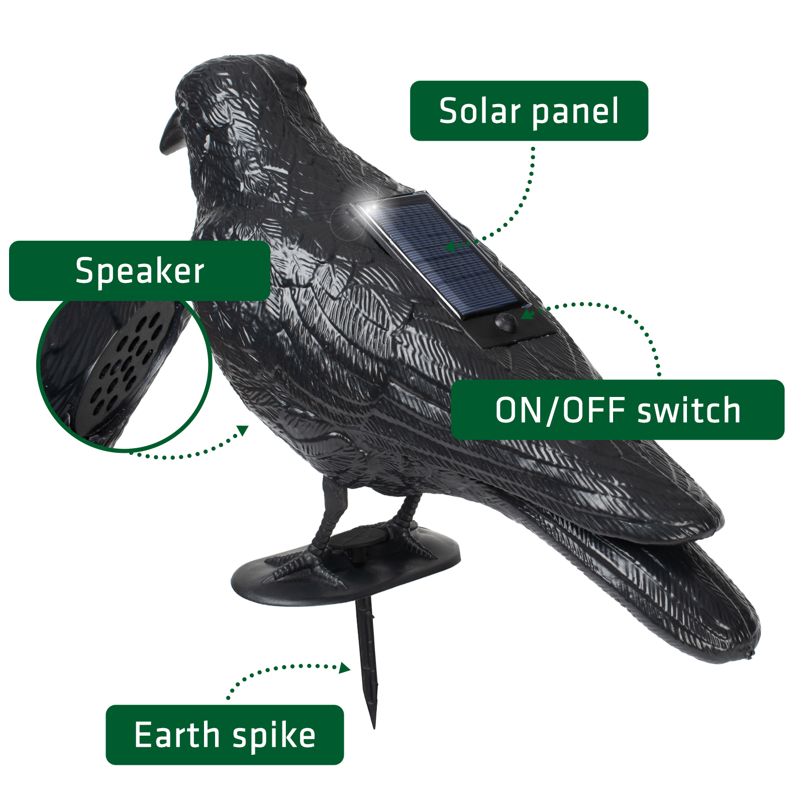 Solar Pigeon-Deterrent Crow Decoy | with realistic sounds | radar motion sensor