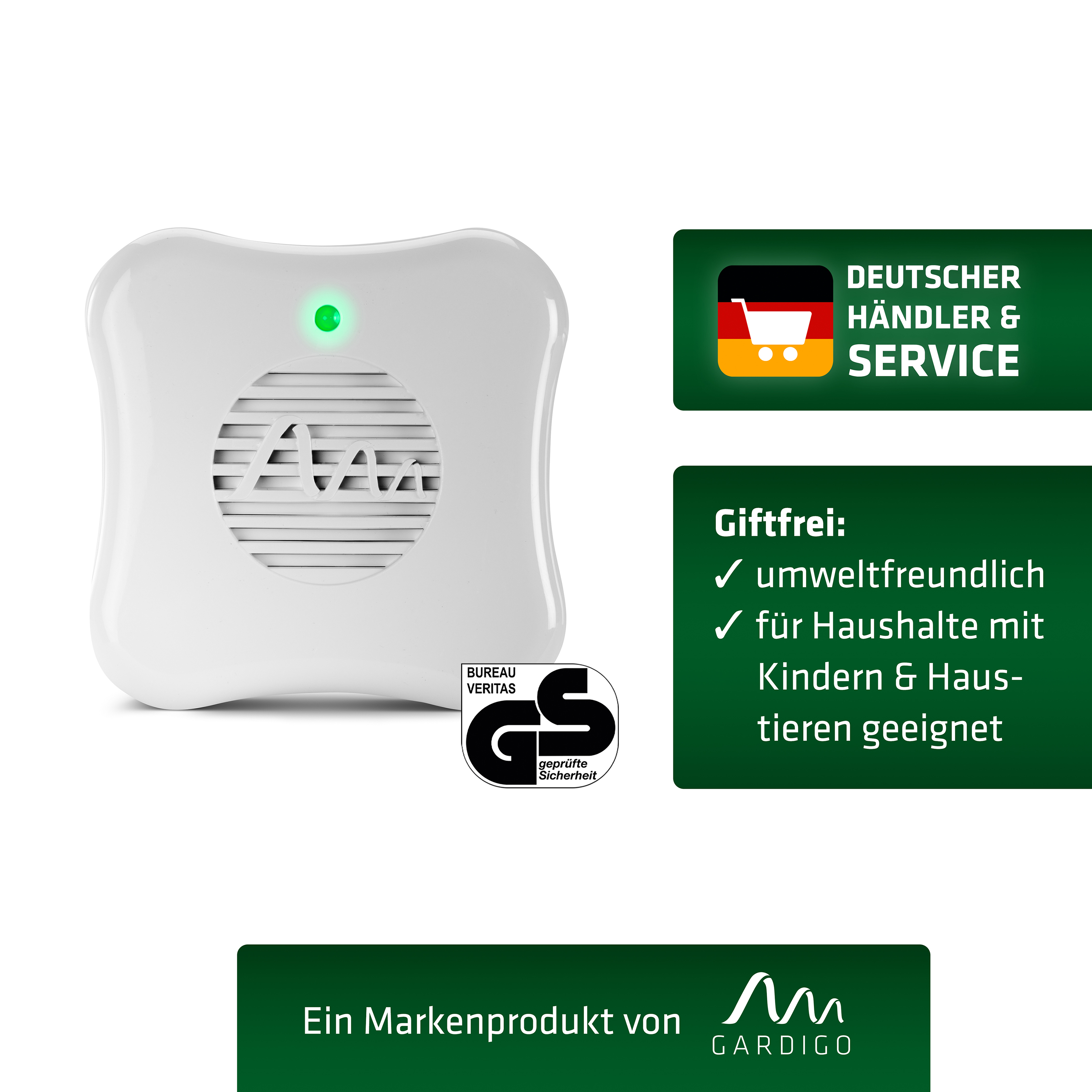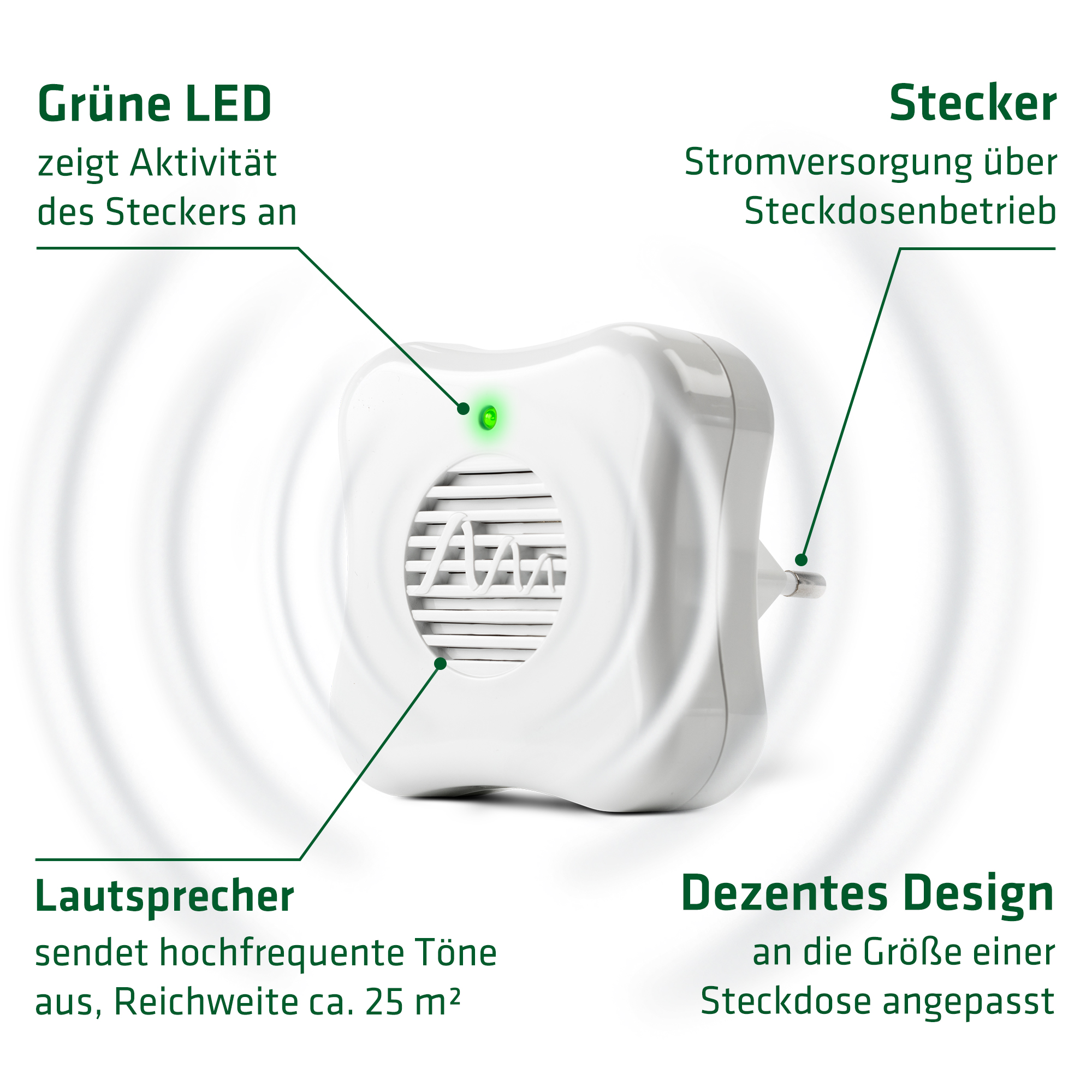 This sonic repeller is hardly any larger than a power outlet and designed to look unobtrusive, yet modern.